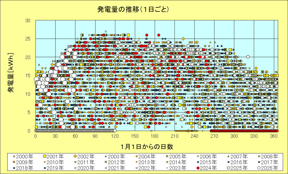 図1 1日の発電量、年ごとの推移