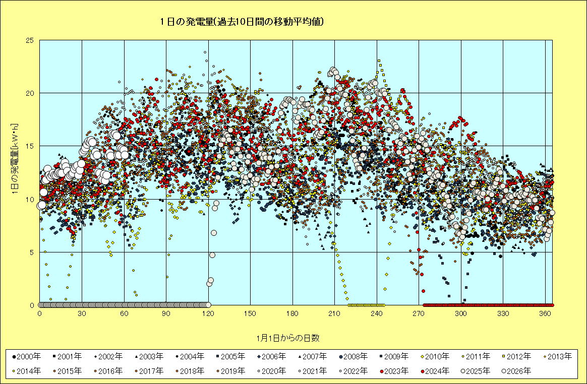 図5 一日あたりの発電量の過去10日間の移動平均値